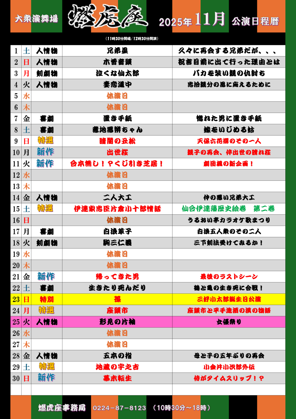 - 大衆演舞場 燃虎座 開場1周年記念日