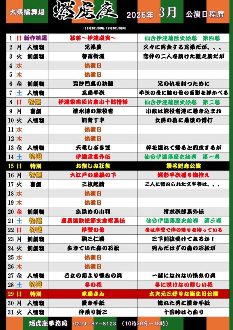 2026年3月の公演予定表