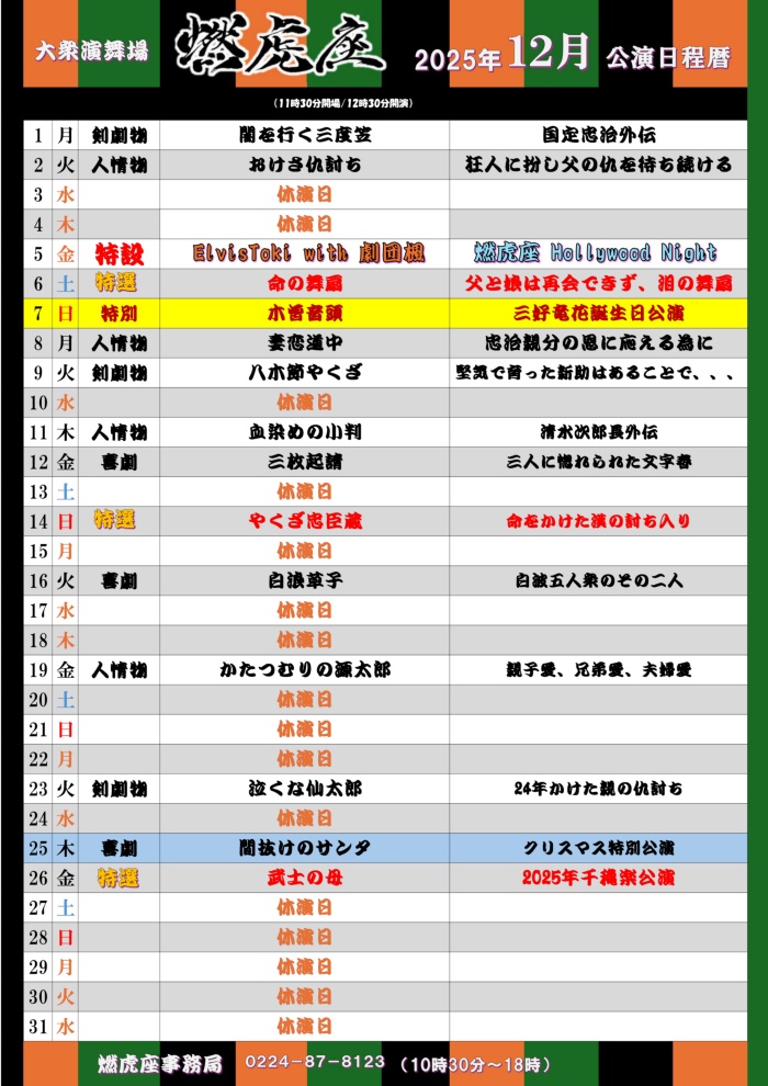 限定公演『伊達宗高 外伝』の観覧は大衆演舞場 燃虎座にて、公演スケジュールやチケット販売はこちら。